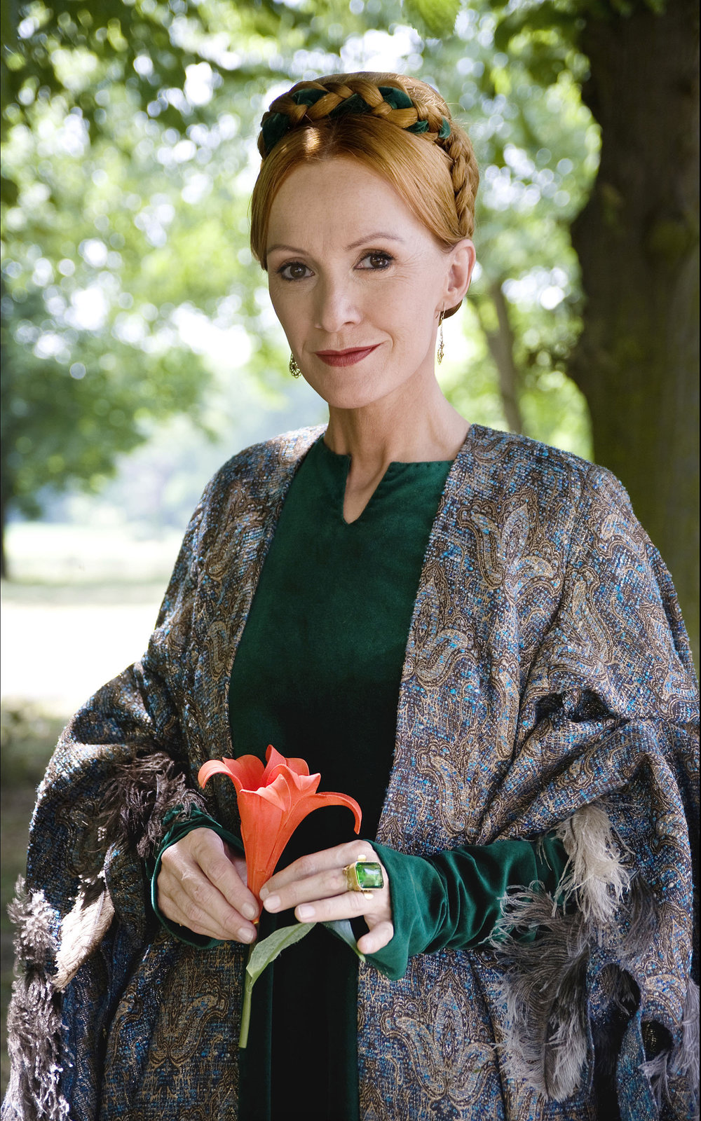 Jorinde und JoringelDie überaus erfolgreiche ARD-Märchenreihe geht in ihr viertes Jahr: Für "Sechs auf einen Streich" steht die erste Riege der deutschen Film- und Fernsehschauspieler vor der Kamera. Federführung für die ARD-Märchenreihe liegt auch diesmal beim Rundfunk Berlin-Brandenburg (rbb). Die Zauberin (Katja Flint) mit der Zauberblume.Bild: © rbb/Arnim Thomaß