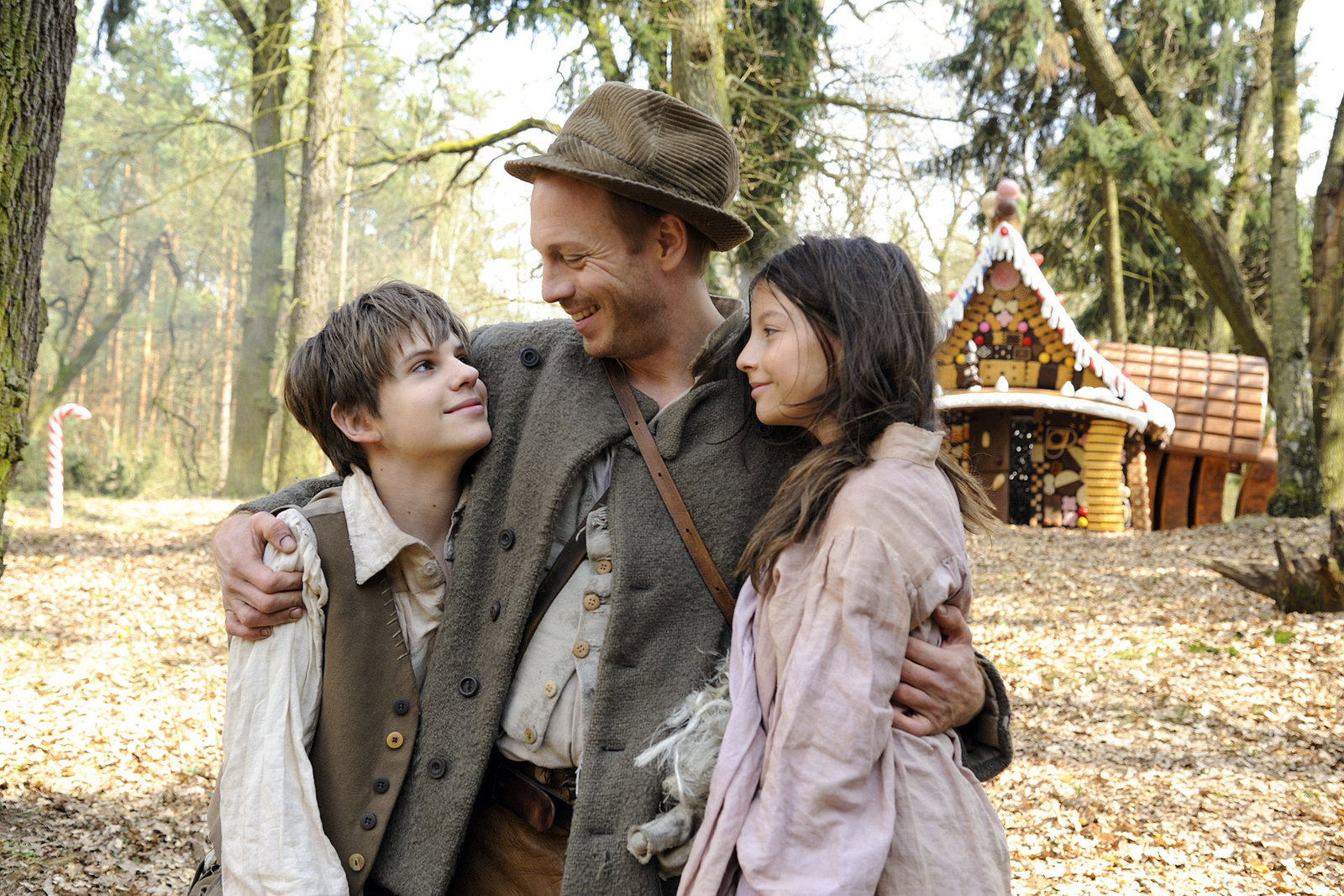 Hänsel und GretelDer Vater (Johann von Bülow) hat seine Kinder Hänsel (Friedrich Heine) und Gretel (Mila Böhning) im Wald wieder gefunden.Bild: © rbb/Hardy Spitz