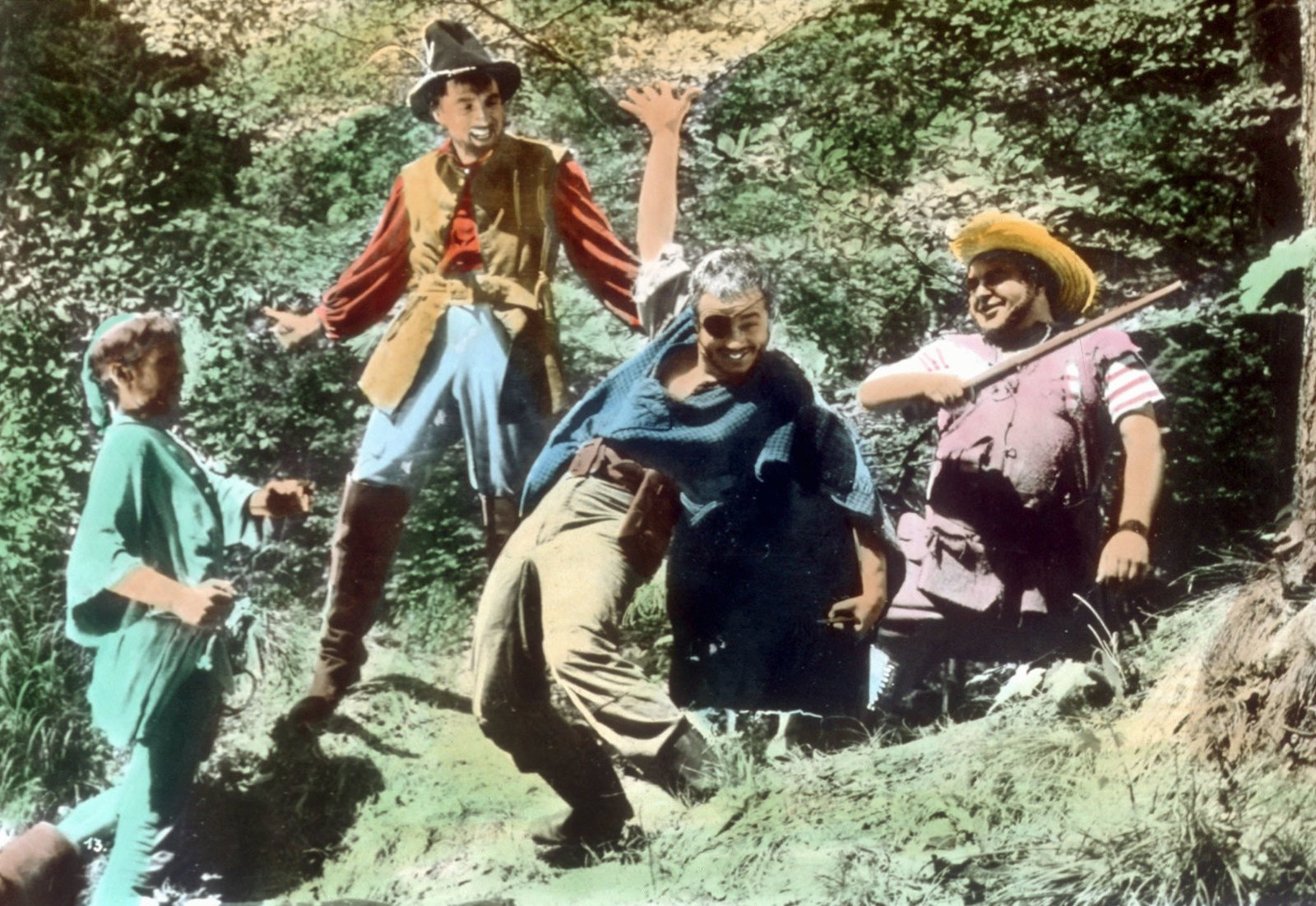 Die Bremer StadtmusikantenDer Räuberhauptmann (Peter Brand, 2. v. links) und seine drei Spießgesellen machen den Wald unsicher.Bild: © SWR/NDR/Degeto
