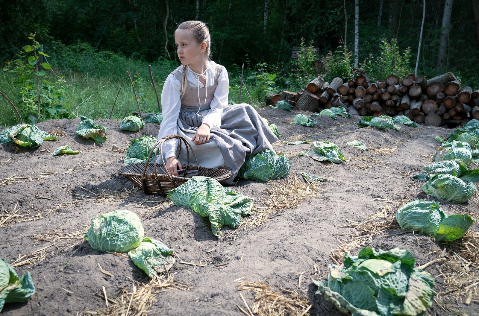 Das Märchen vom goldenen TalerEva (Frida Brandenburg) erntet Kohl.Bild: © rbb/Michael Rahn