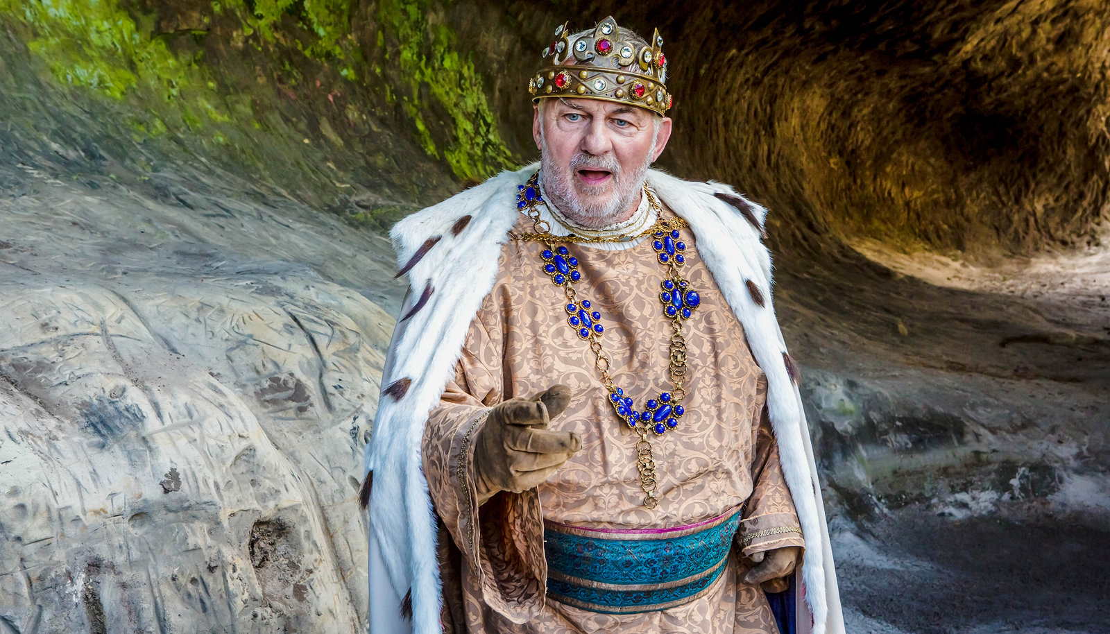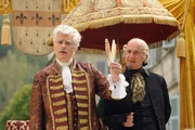Die drei FedernFürst Gundolf erklärt die Aufgabe und wirft die Federn. Von links: Fürst Gundolf (Sky du Mont) und Julius (Michael Schönborn).Bild: © BR/Barbara Bauriedl