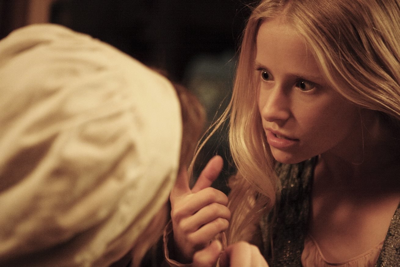 Die GänsemagdPrinzessin Elisabeth (Karoline Herfurth) wird von der falschen Prinzessin (Susanne Bormann) angegriffen. Motiv: Thronsaal in Gustavs Schloss (Ronneburg)Bild: © kinderfilm www.FelixHolland.de / TV Puls