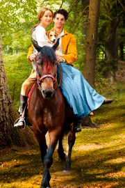 Der SchweinehirtDie Königin von Lichterwald (Margarita Broich) und ihr Sohn, Prinz Augustin aus dem Königreich Lichterwald (Emilio Sakraya), reiten zu ihrem Schloss. Nur eine reiche Hochzeit kann das verarmte Königreich retten.Bild: © rbb/Michael Rahn