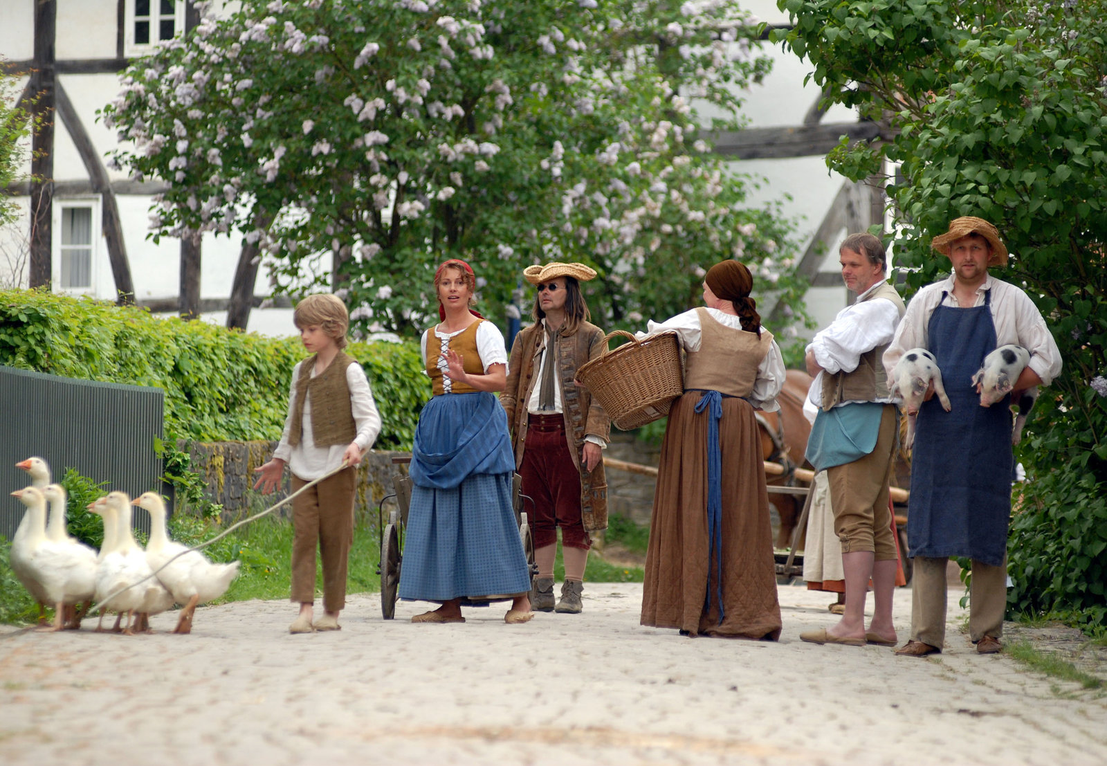 Tischlein deck dichIm Heimatdorf von Max ist das Leben nicht leicht. Mutter Imme (Karin Thaler, 2.v.li) hat die Hand ihrer Tochter Lotte einem reichen Bauernsohn versprochen.Bild: © WDR/Hardy Spitz
