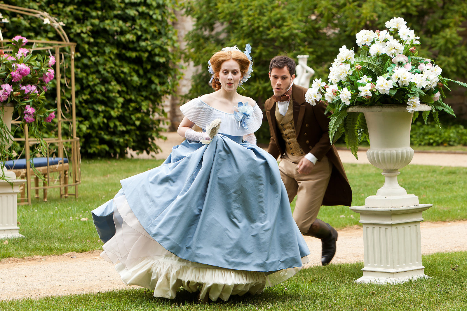 Der Prinz im BärenfellHenriette (Nora Hickler) rennt vor dem jungen Fürsten (Nicolaus Sternfeld) davon.Bild: © rbb/Daniela Incoronato