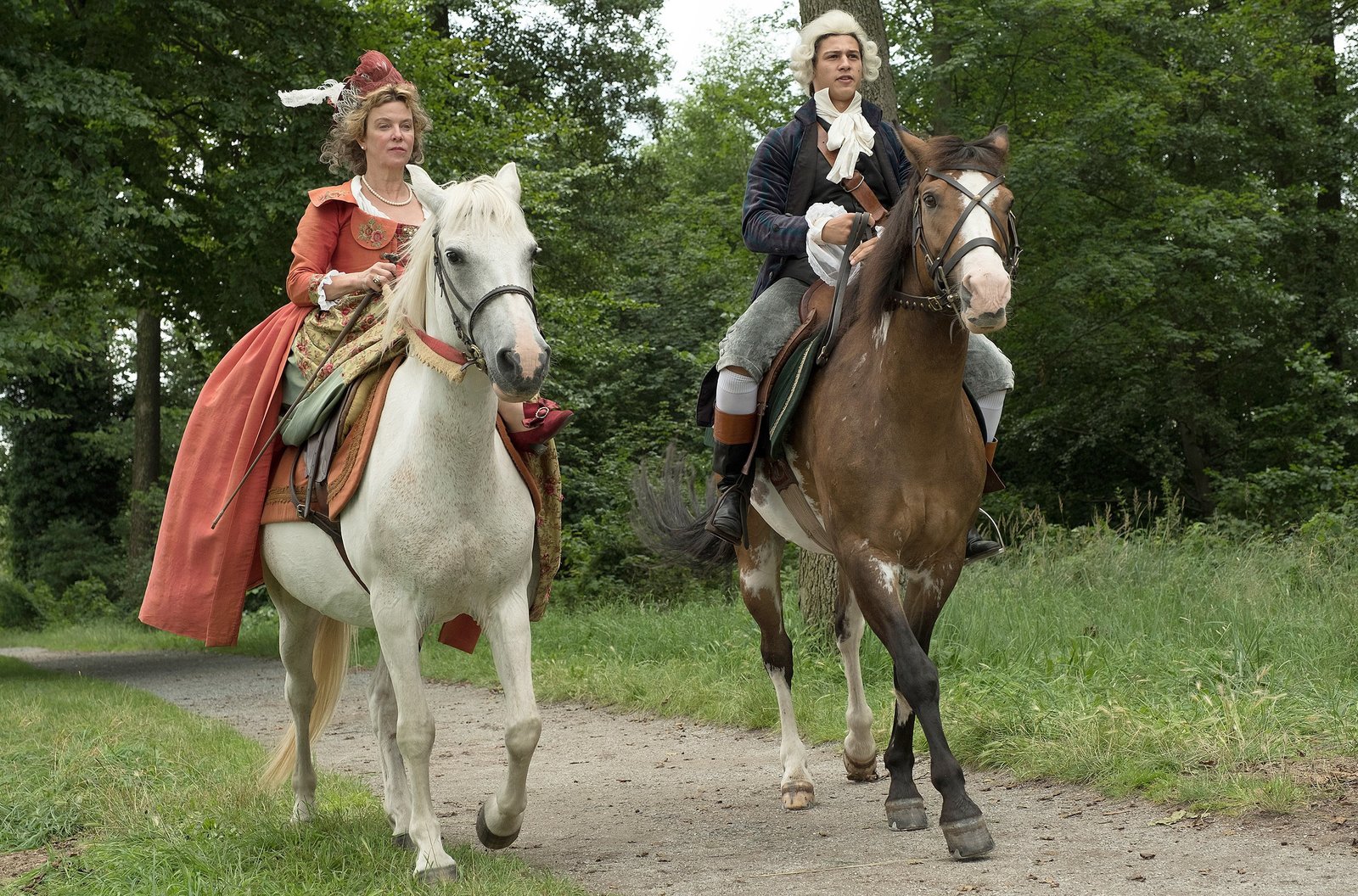 Der SchweinehirtDie Königin von Lichterwald (Margarita Broich) und ihr Sohn, Prinz Augustin aus dem Königreich Lichterwald (Emilio Sakraya), reiten zu ihrem Schloss. Nur eine reiche Hochzeit kann das verarmte Königreich retten.Bild: © rbb/Michael Rahn