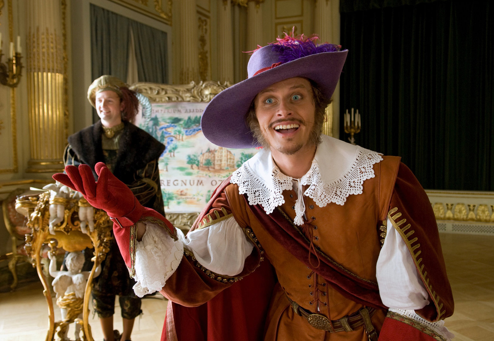 Der gestiefelte KaterDer gestiefelte Kater (Roman Kni?ka, re.) berichtet am Hofe von seinem Herren den Grafen von Carrabas.Bild: © NDR/Nicolas Maack