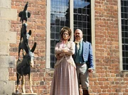 Die Bremer StadtmusikantenDie Schauspieler Florian Martens und Gesine Cukrowski vor den orginal Bremer Stadtmusikanten am Rathaus.Bild: © Radio Bremen/Radio Bremen