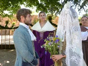 Die SalzprinzessinDas Brautpaar tritt vor das Schloss. Amélie (Leonie Brill) ist Königin, König Cristof (Leonard Lansink, Mitte) übergibt seine Tochter an seinen Schwiegersohn Prinz Thabo (Elvis Clausen).Bild: © WDR/WDR/Kai Schulz