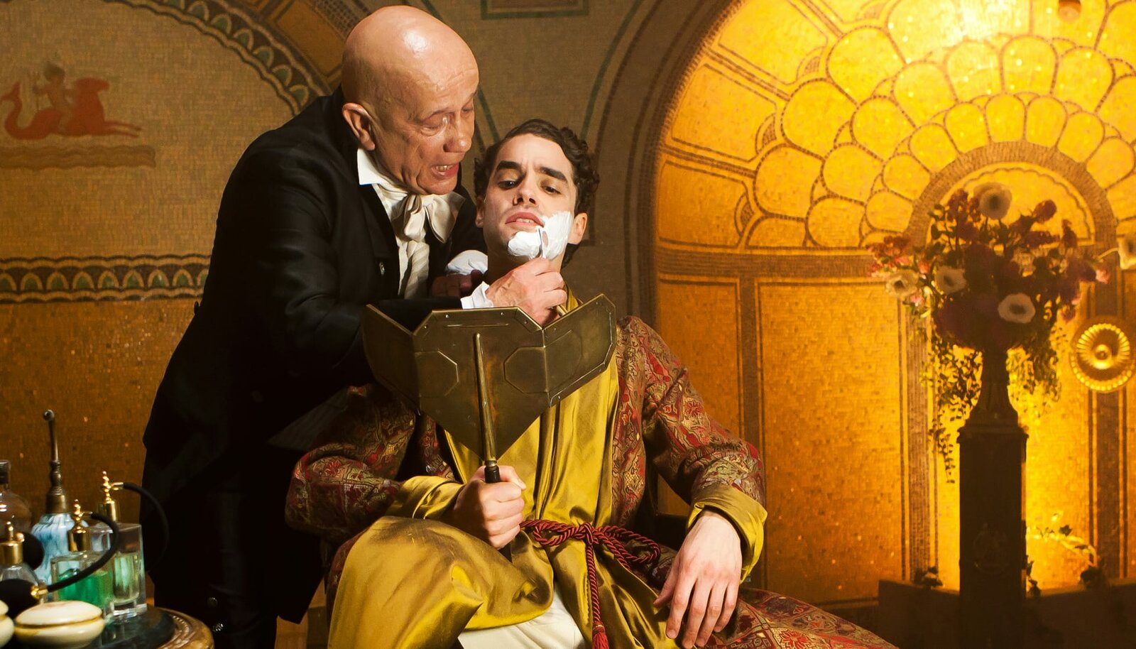 Der Prinz im BärenfellDer Barbier (Christian Grashof, links) bei der täglichen Rasur des Prinzen Marius (Max Befort).Bild: © rbb/Daniela Incoronato