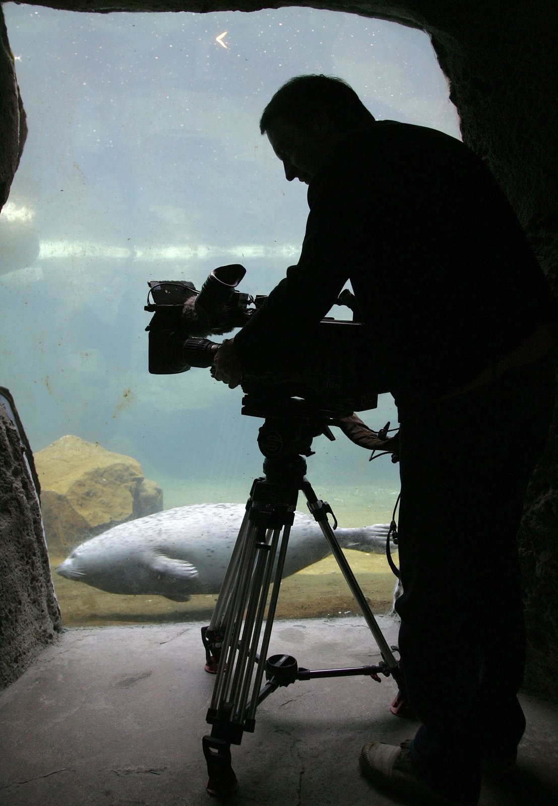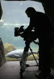 Seifenblasenoper bei den PinguinenKameramann Stefan Paul am Seelöwen-Aquarium.Bild: © Radio Bremen/Ingo Wagner