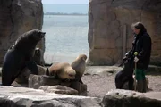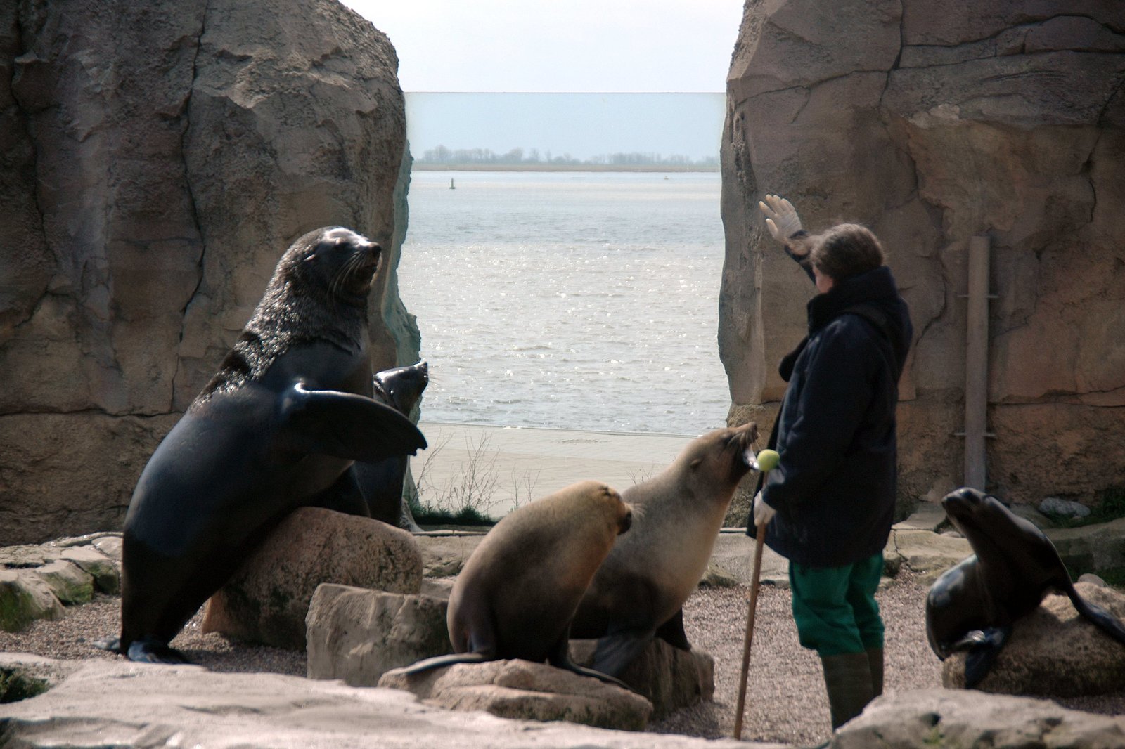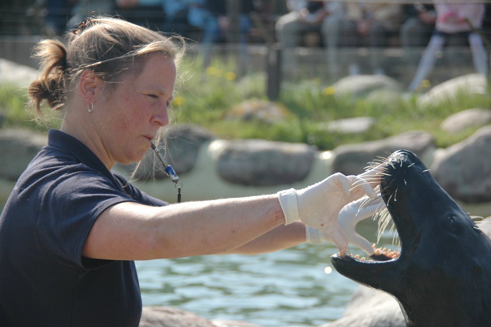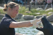 Einsatz im GehegeARD/RB SEEHUND, PUMA & CO FOLGE 83, "Einsatz im Gehege", am Freitag (29.07.11) um 16:10 Uhr im ERSTEN. Carmen Gürster trainiert mit Seebärin Poca.Bild: © Radio Bremen/Volkmar Strüßmann