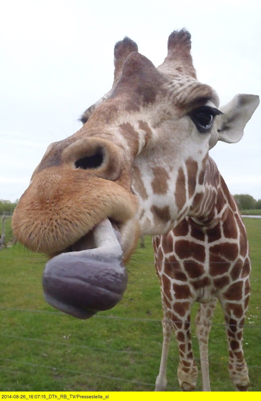 Ausflug mit TierenARD/RB SEEHUND, PUMA & CO FOLGE 179, am Mittwoch (03.12.14) um 16:10 Uhr im ERSTEN. Giraffe mit langer Zunge und krankem KnieBild: © Radio Bremen/Volkmar Struessmann