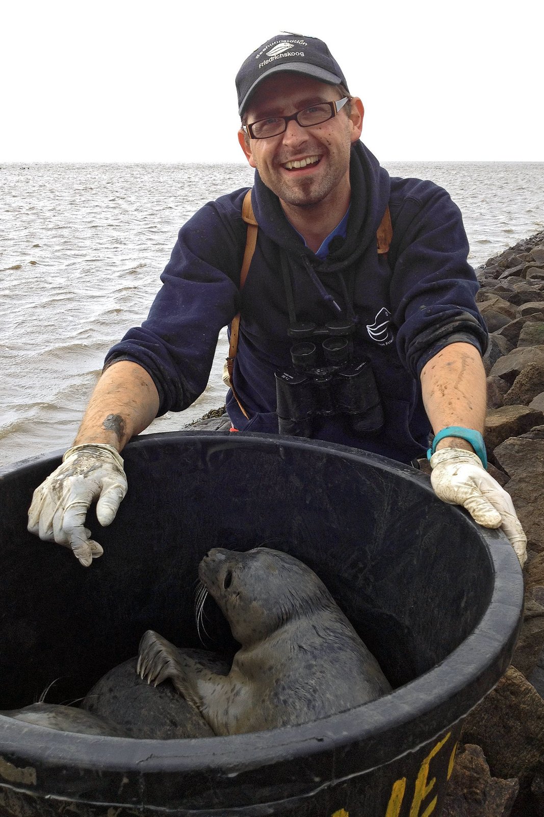 Expedition ins WattARD/RB SEEHUND, PUMA & CO, FOLGE 132, am Dienstag (19.03.13) um 16:10 Uhr im ERSTEN. Rettung im Watt, Jan Dohndorf hat zwei gestrandete Heuler eingefangen.Bild: © RB/Volkmar Strueßmann