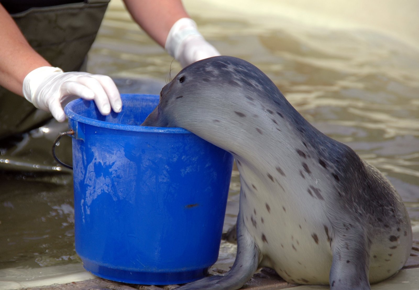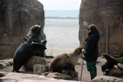 Hausbesetzung bei den PinguinenSeehundheuler im Trottelbecken ist die Heimat Nordsee noch weit entfernt. Sie können immer noch nicht richtig Fisch fressen.Bild: © Radio Bremen