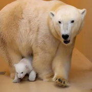 EiszeitARD/RB SEEHUND, PUMA & CO FOLGE 185, am Donnerstag (11.12.14) um 16:10 Uhr im ERSTEN. Eisbärbaby mit Mutter Valeska auf der Freianlage im Zoo am Meer BremerhavenBild: © Radio Bremen/Volkmar Struessmann
