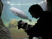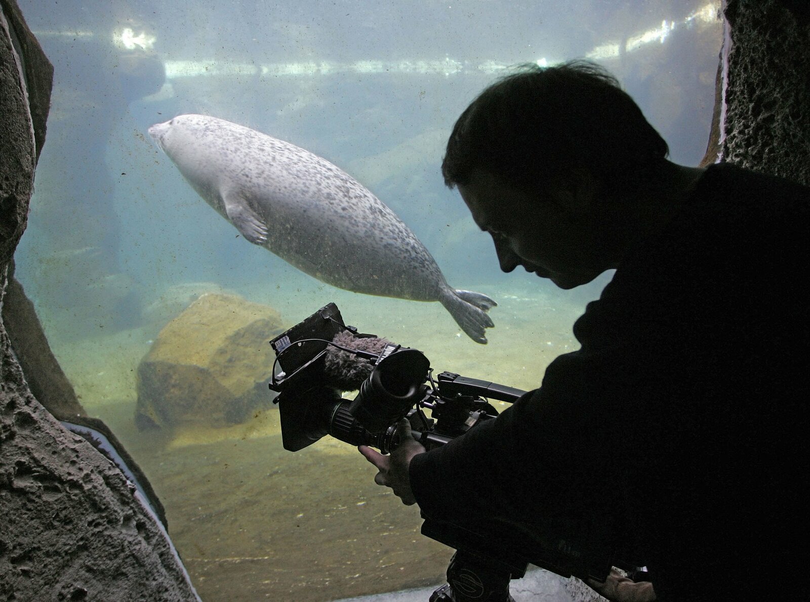Alles für die EisbärenDer Radio-Bremen-Kameramann Stefan Paul nimmt im "Zoo am Meer" in Bremerhaven einen tauchenden Seelöwen aus der Unterwasserperspektive der Anlage auf.Bild: © Radio Bremen/Ingo Wagner