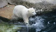 Eisbärin Lale alleinEisbaernachwuchs Lale wagt sich bisher nur ans Wasser.Bild: © Radio Bremen