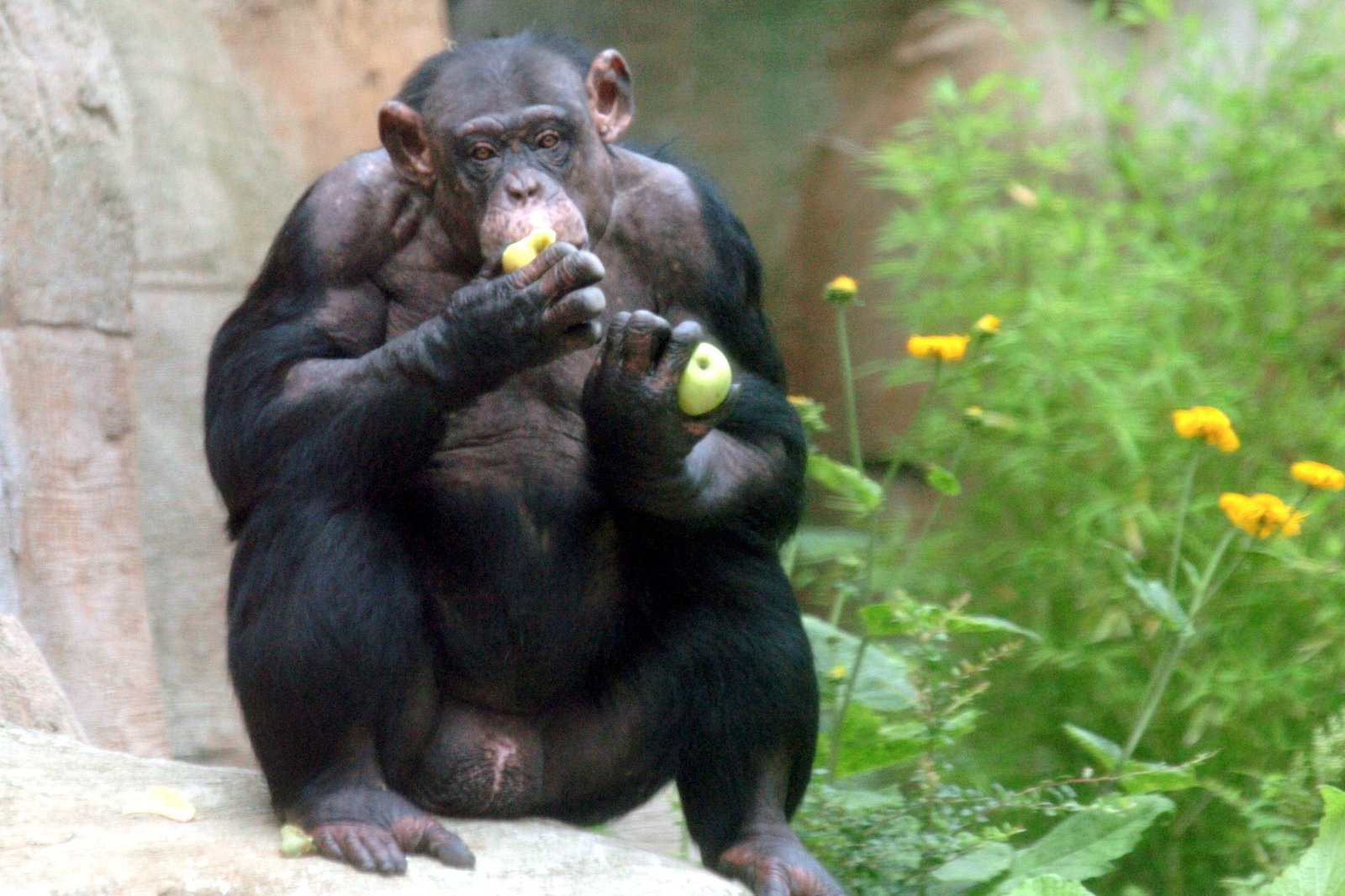 PipiprobeSchimpanse Chicko soll sein Pipi fuer die Forschung gebenBild: © Radio Bremen