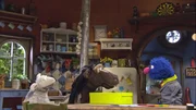 Der VertreterWolle und Pferd lassen sich von Grobi neue Möbel zeigen, die er verkaufen will.ÂBild: © NDR/Sesame Workshop