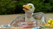 Eine Seefahrt, die ist schmutzig...Eine Möwe hat sich in einer Plastikflasche verfangen.Bild: © NDR/Sesame workshop