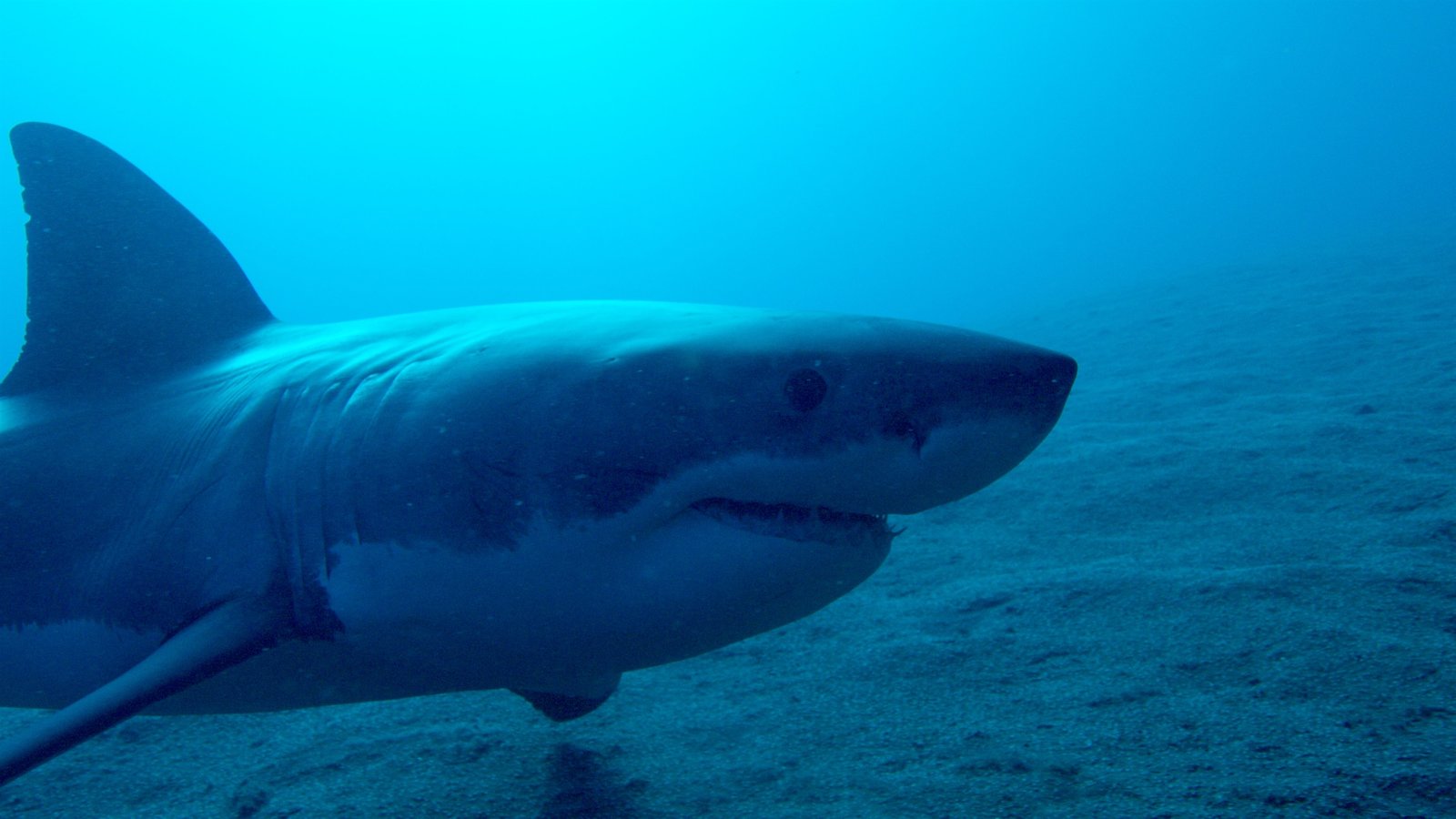 Giant Sharks - Hai-Expedition vor KubaA great white shark swims close to diver.Bild: © Discovery Channel