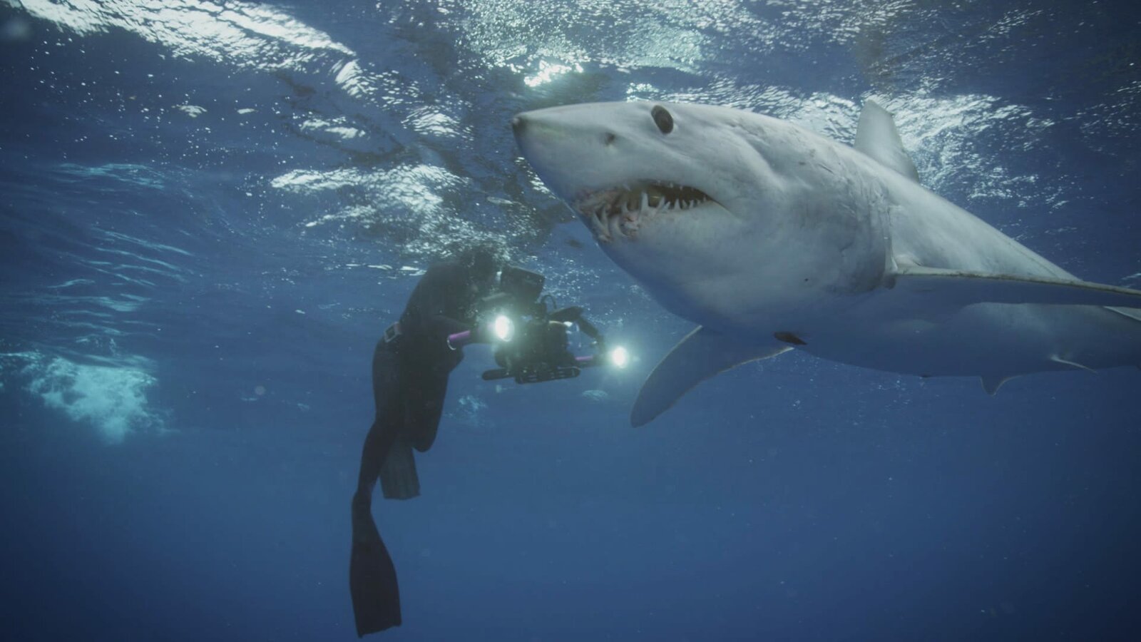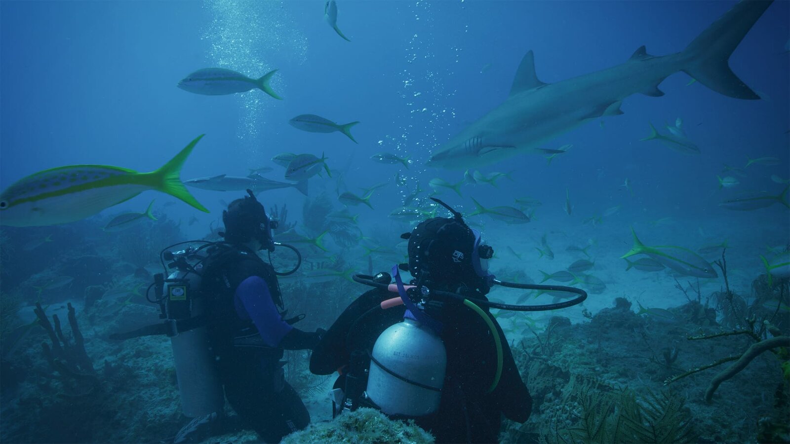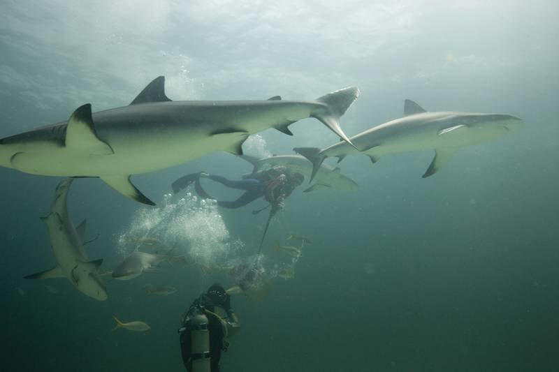 Der tödlichste Hai der WeltCrew observing an Oceanic White Tip shark.Bild: © Discovery Channel