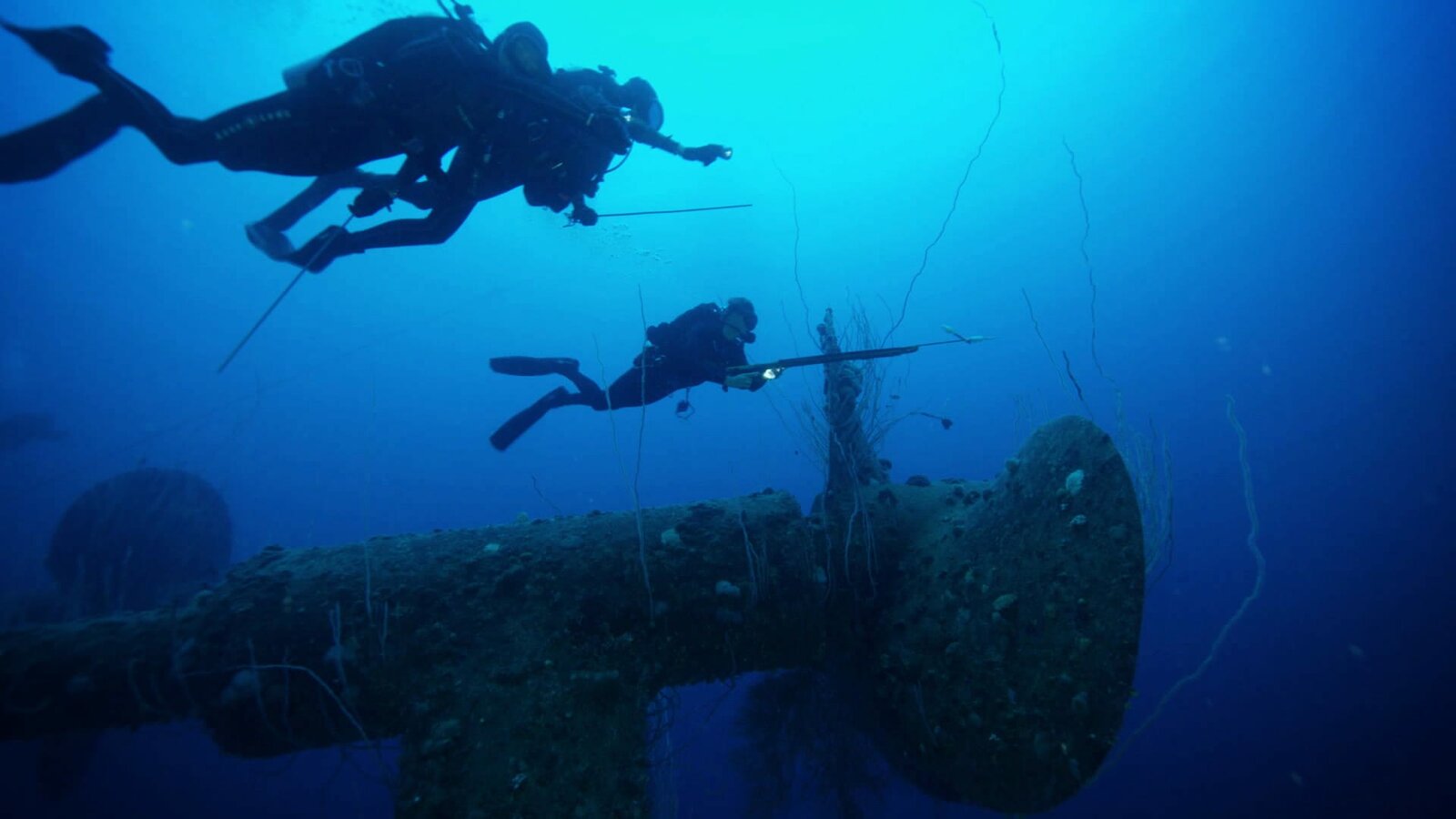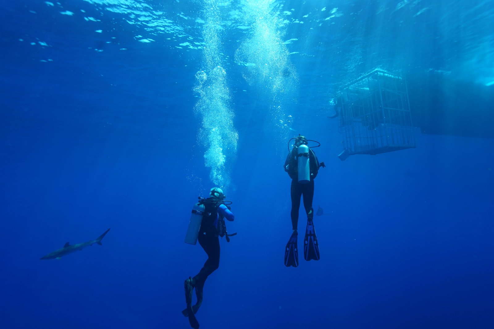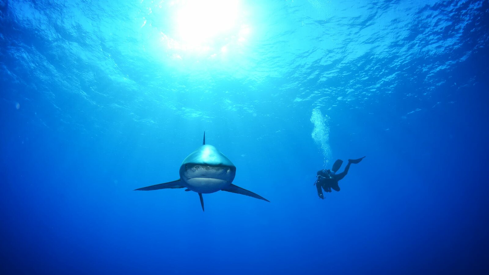 Der tödlichste Hai der WeltCrew observing an Oceanic White Tip shark.Bild: © Discovery Channel