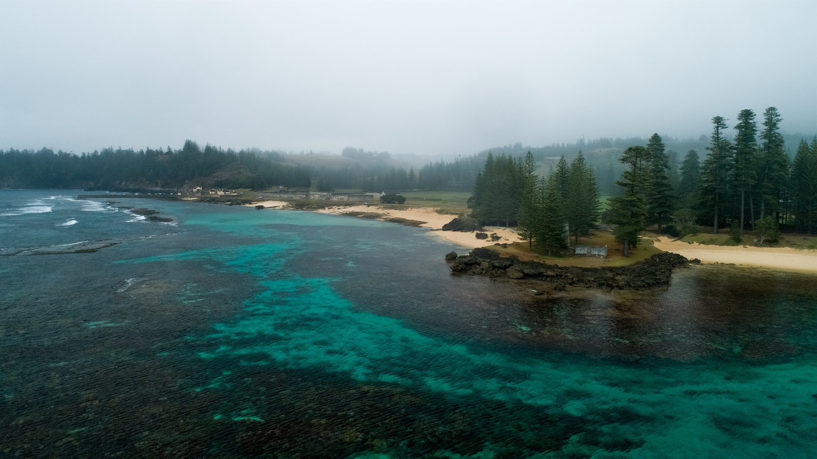 Die Tigerhaie von Norfolk IslandAerial of Slaughter Bay and edge of Emily Bay, Norfolk Island. Kingstone pier in the distance.Bild: © Discovery Communications LLC
