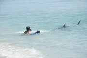 Der Tag, als die Haie kamen 3Shark approaching swimmer, see fin and tail.Bild: © Discovery Networks / Beanfield Productions / DCL