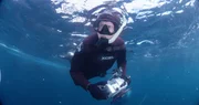 Long Island: Hotspot der HaieJoe Romeiro snorkeling at the surface, looking into the camera.Bild: © Discovery Channel / Discovery Communications