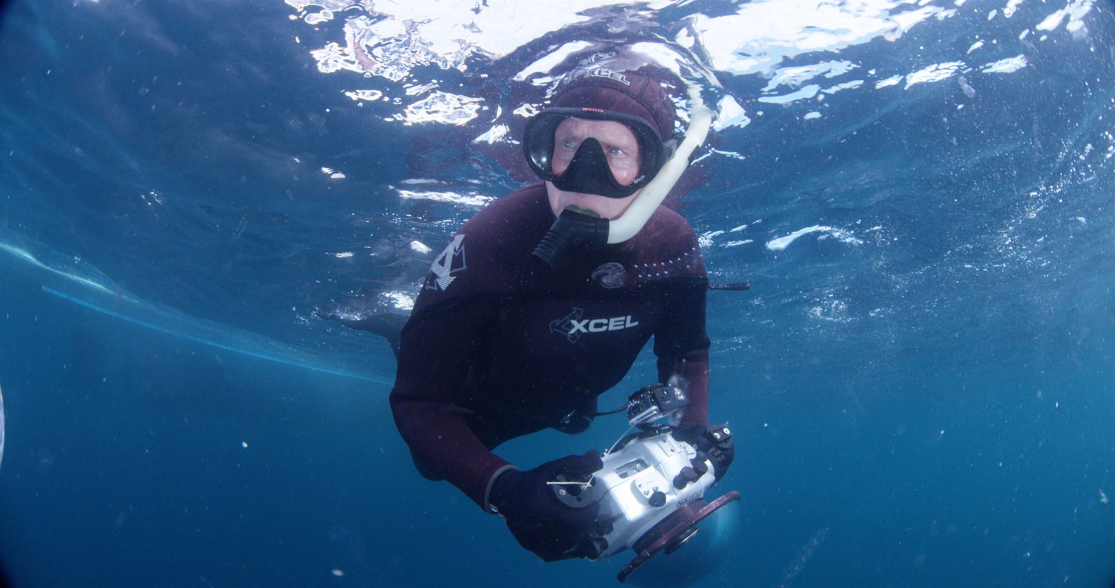 Shark Vortex - Konferenz der HaieJoe Romeiro snorkeling at the surface of the water.Bild: © Discovery Channel / Discovery Communications