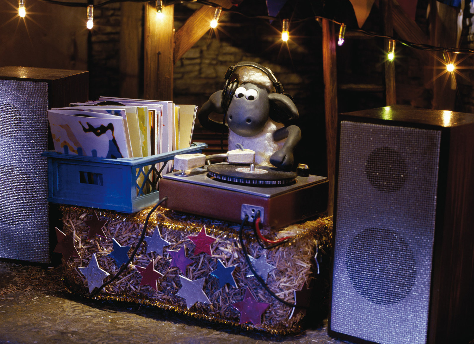 Disco in der ScheuneNoch hat Shaun alles im Griff - aber dann gerät der Discoabend in der Scheune völlig außer Kontrolle, als die ungeladenen Schweine das DJ-Pult und die Tanzfläche übernehmen.Bild: © Aardman Animations Ltd./BR/WDR