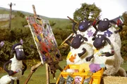 Disco in der ScheuneShaun schafft gemeinsam mit den anderen Schafen ein Werk im Stile großer „action painting“ Künstler. Der Farmer ist schockiert, bis er erfährt, dass man für so ein Bild eine Menge Geld bekommt...Bild: © WDR/Aardman Animations Ltd.