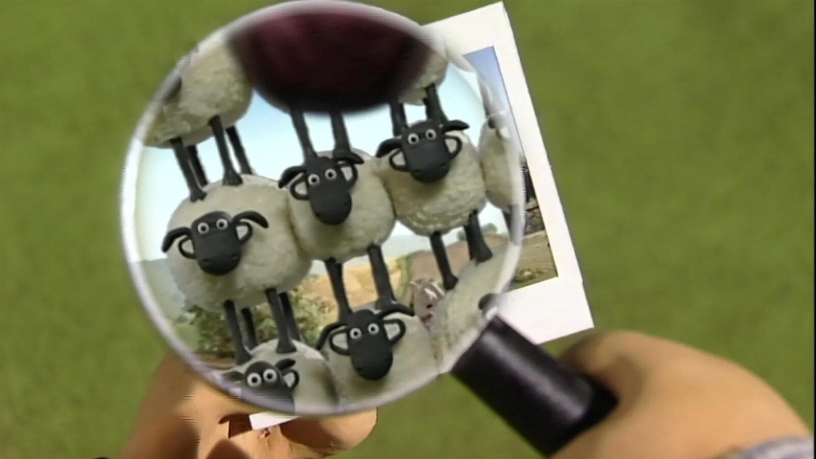 Shaun als FotografBitzer sieht sich Shauns Fotos genau an. Sie sind ziemlich gut geworden.Bild: © WDR/Aardman Animation Ltd./BBC