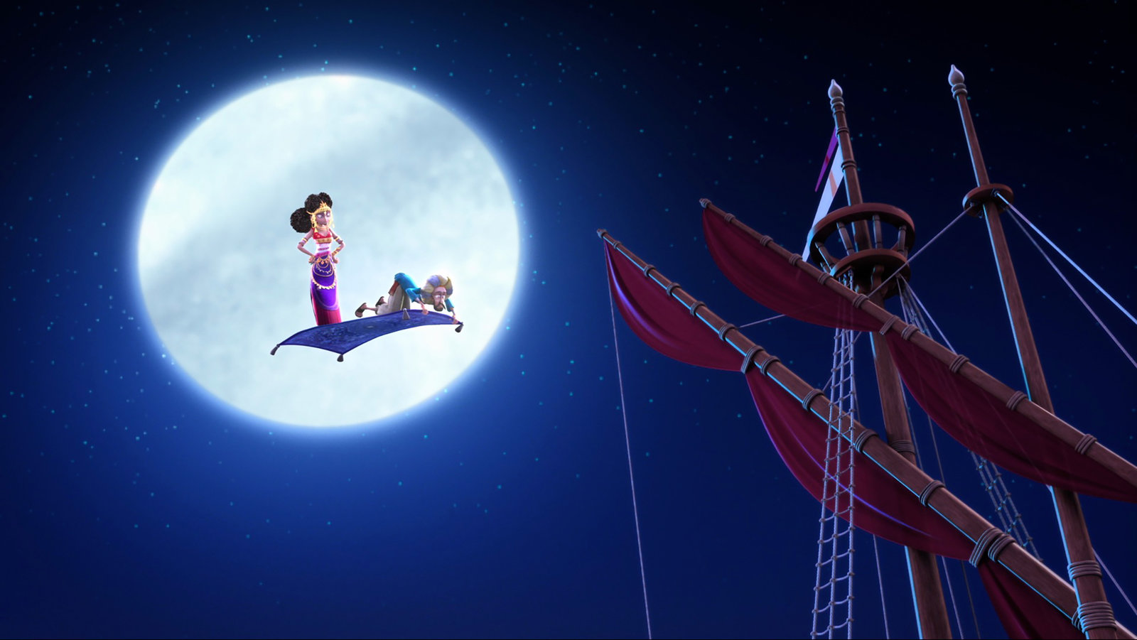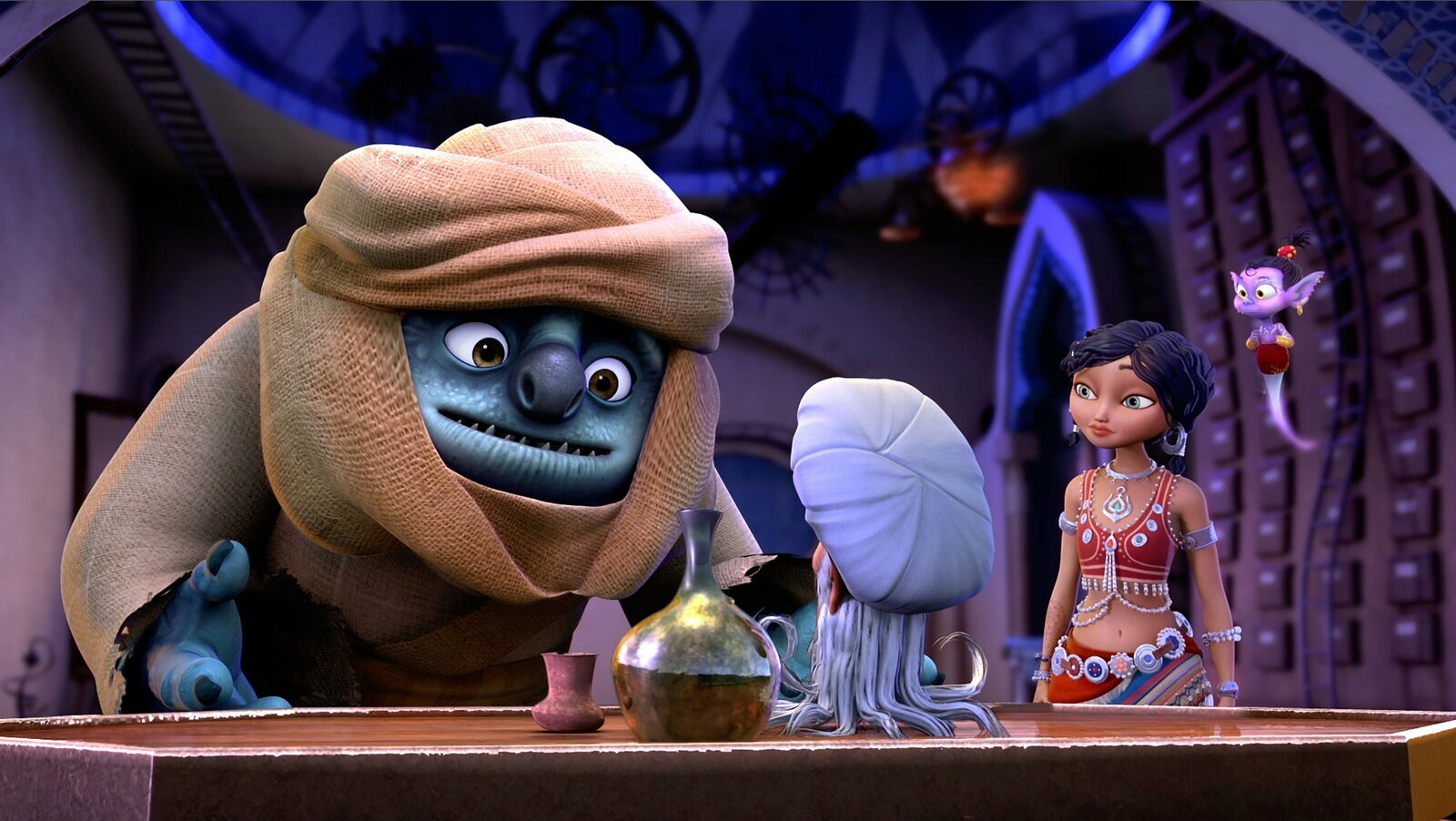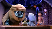Der große DschinnDunyazad und Sindbad der Täger im Anflug! Das bedeutet gewiss nichts Gutes für unsere Helden.ÂBild: © rbb/Hahn Film AG / Chocolate Liberation Front / Toonz Entertainment / 1001 Nights Productions Pty Ltd