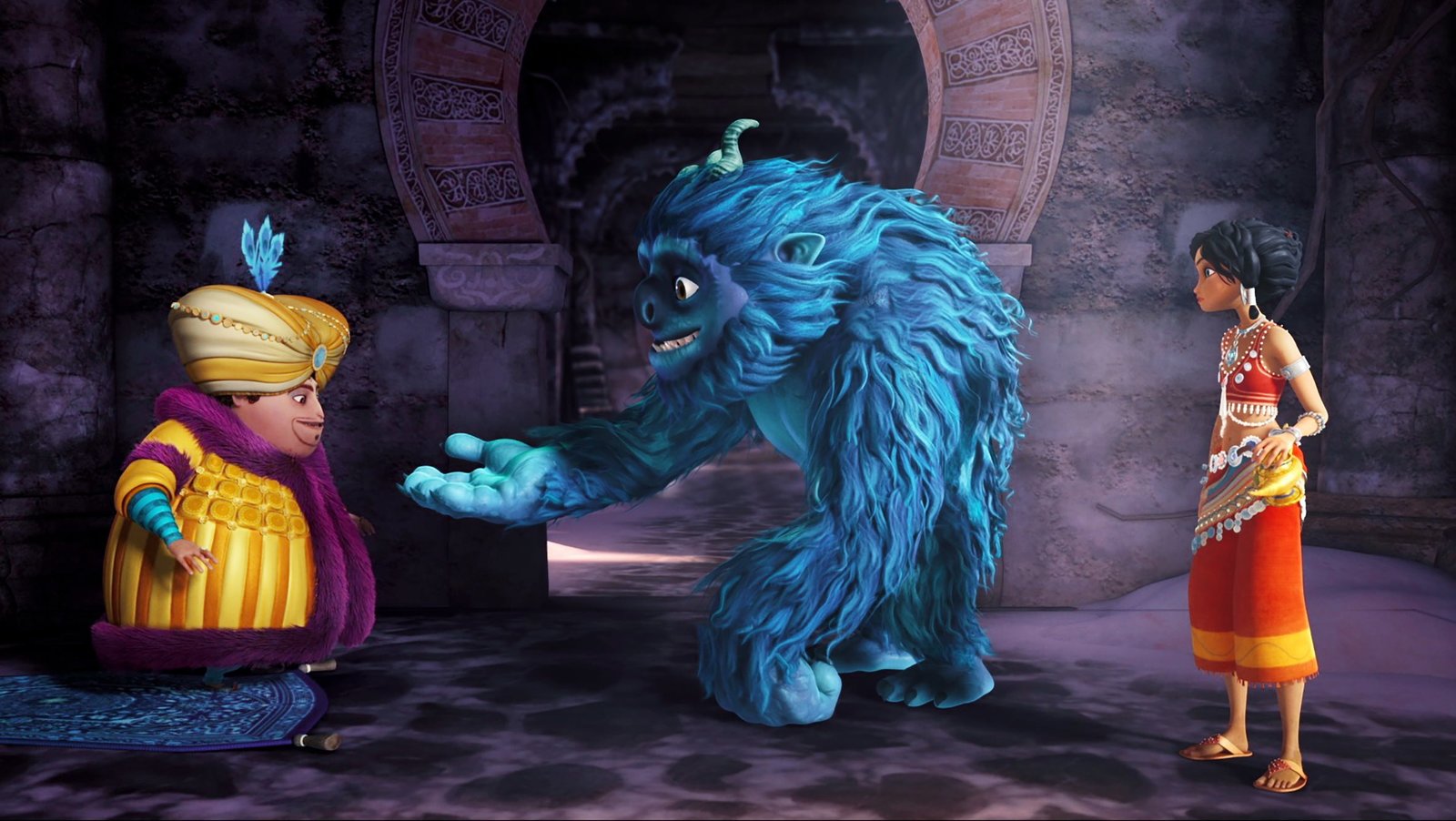 Palast in AufruhrKarim, Sherazade und Halil lernen Duban, den geheimnisvollen Doktor, kennen.Bild: © rbb/Hahn Film AG/Chocolate Liberation Front Pty Ltd/Toonz Entertainment Pte Ltd