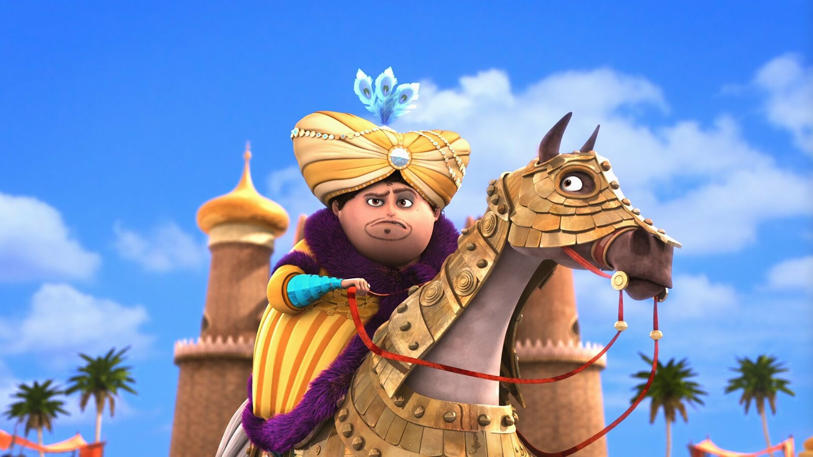 Der Fluch des AkatashDer heldenhafte Sultan Shazaman beschließt den Überfall auf die Kristallstadt aus sicherer Entfernung zu lenken.Bild: © rbb/Hahn Film AG/Chocolate Liberation Front Pty Ltd/Toonz Entertainment Pte Ltd