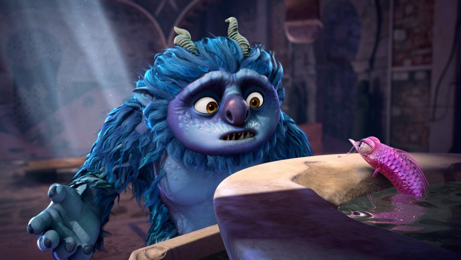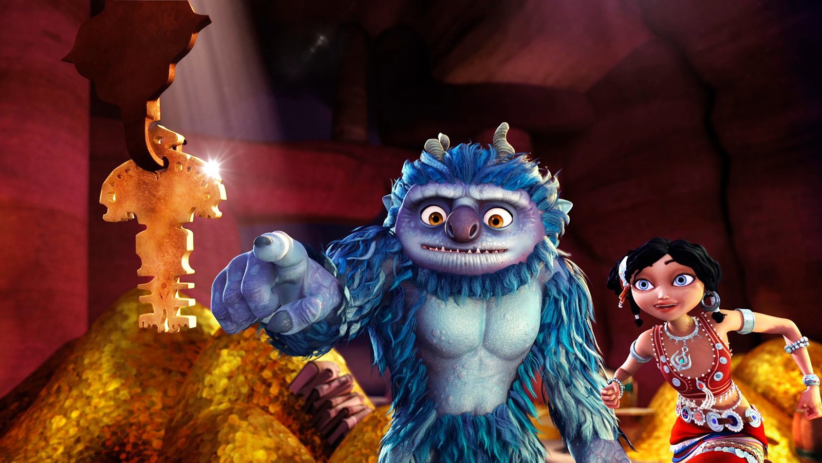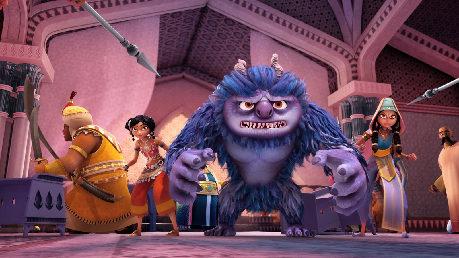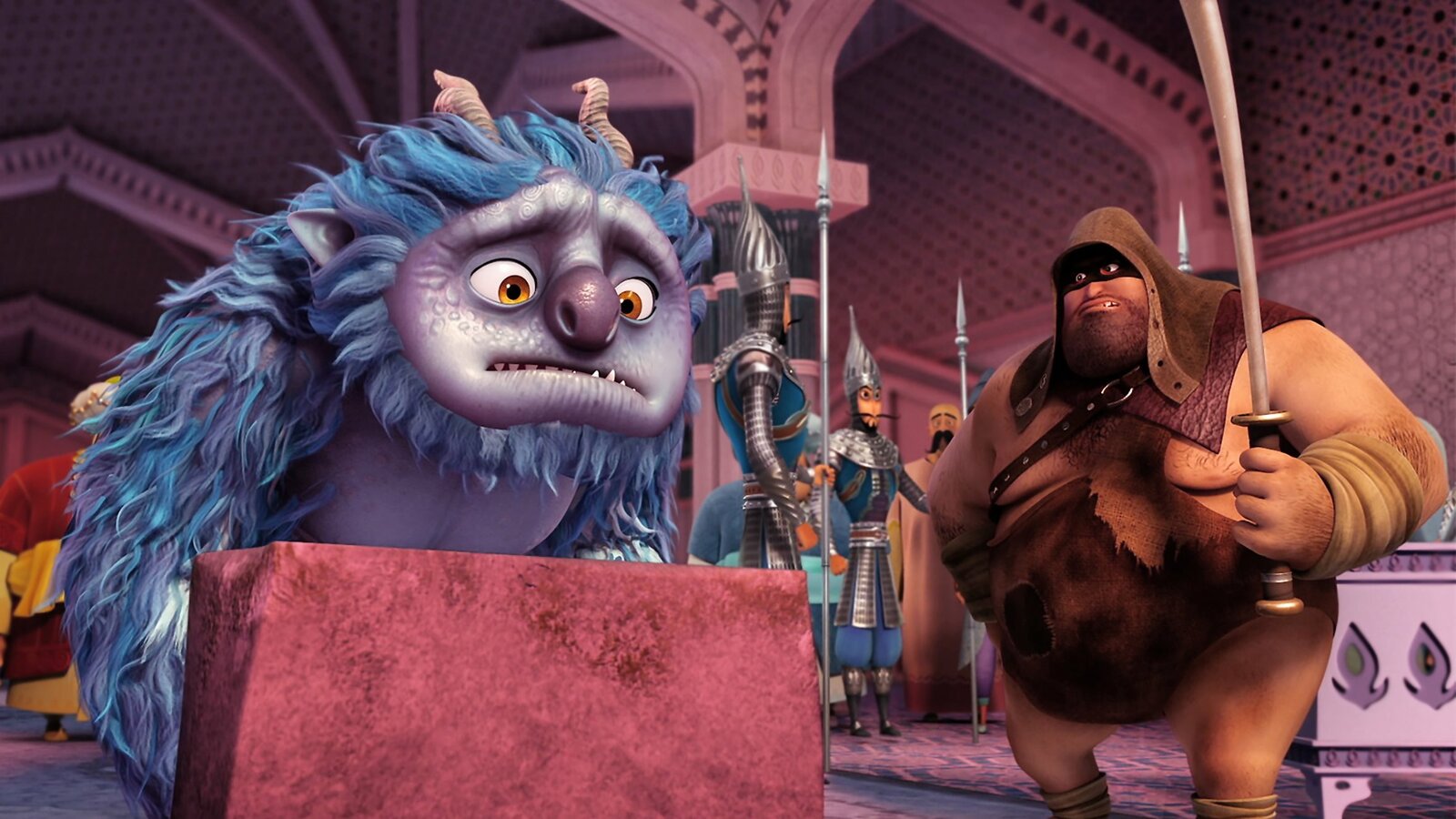 Der große DschinnSherazade und Karim lernen den Herrscher der Insel kennen – Dämon Akatash. ÂBild: © rbb/Hahn Film AG/Chocolate Liberation Front Pty Ltd/Toonz Entertainment Pte Ltd