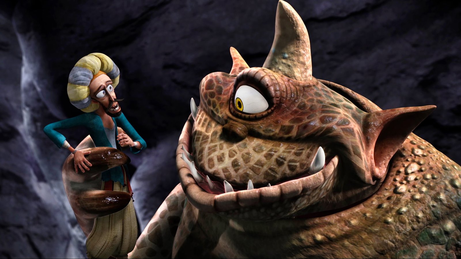 Der vertauschte KompassFür den Riesen ist Sindbad nichts anderes als "sprechendes Fleisch".Bild: © rbb/Hahn Film AG/Chocolate Liberation Front Pty Ltd/Toonz Entertainment Pte Ltd