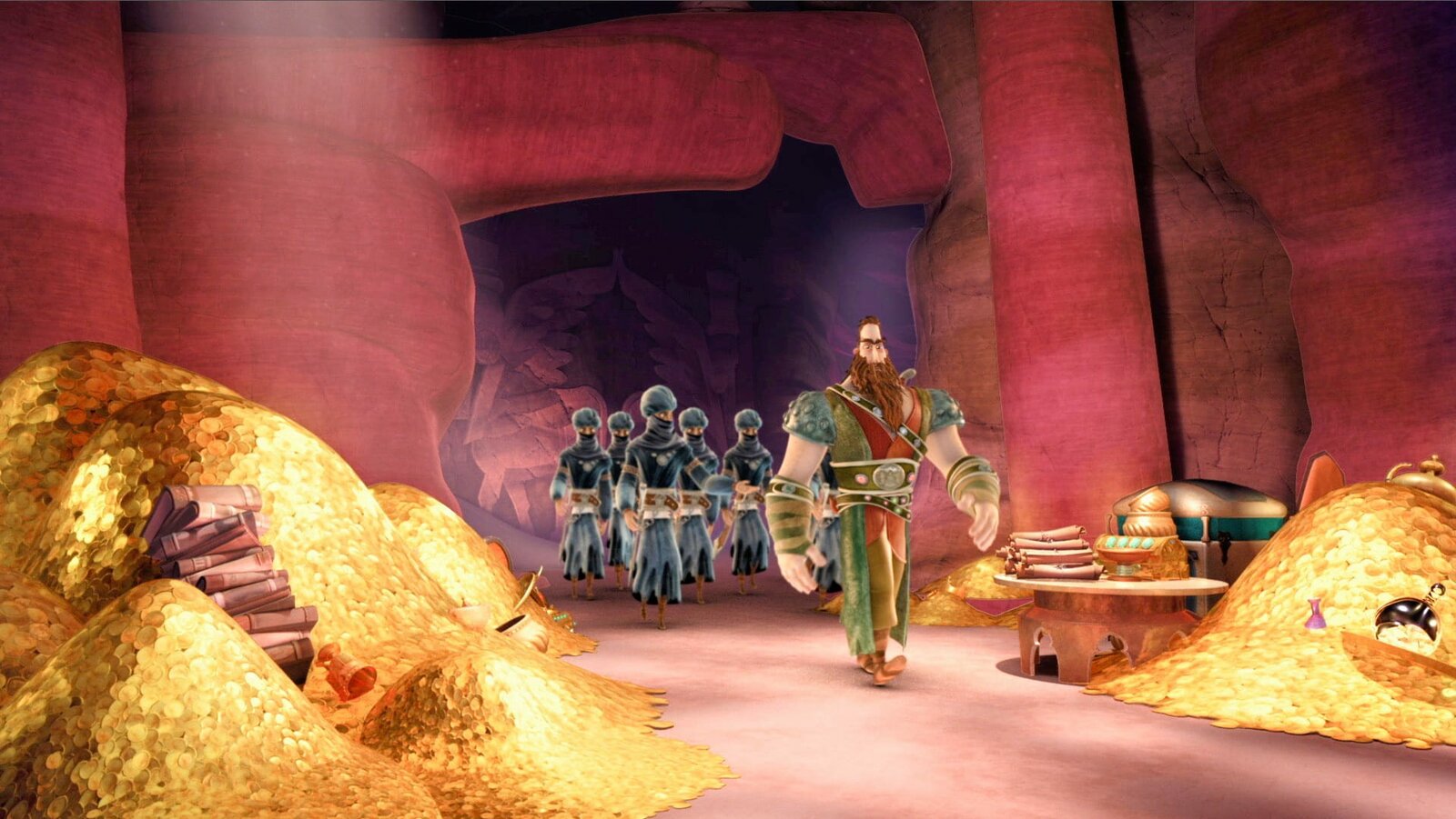 Auf der Wak-Wak InselSherazade lässt sich von Osman und seinen Wachen festnehmen. Sie hat nämlich einen neuen Plan.ÂBild: © rbb/Hahn Film AG / Chocolate Liberation Front / Toonz Entertainment / 1001 Nights Productions Pty Ltd