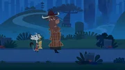 Wer hat der Boa aufgelauert?Sherlock Yack wundert sich, dass Hermione einen Ehrenpreis erhalten hat. Seines Wissens kann sie gar kein Instrument spielen.Bild: © ZDF/Mondo tv