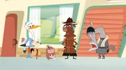 Wer hat La Kranich gereizt?Sherlock Yack und Hermione verhören Fräulein Stinktier, das bekannt ist für seine Putzsucht!Bild: © ZDF/Mondo tv