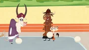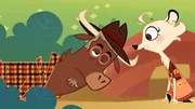 Wer hat den Tiger aufs Korn genommen?Sherlock Yack und Hermione befragen das Zebu.Bild: © ZDF/Mondo TV