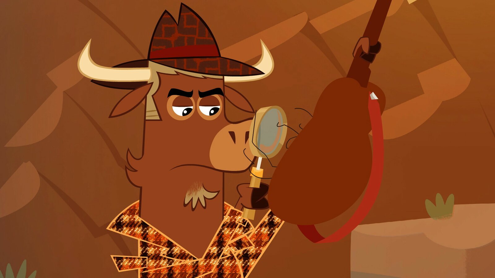 Wer hat die Schildkröte ausgebremst?Sherlock Yack untersucht ein Beweisst??ck.Bild: © ZDF/Mondo tv