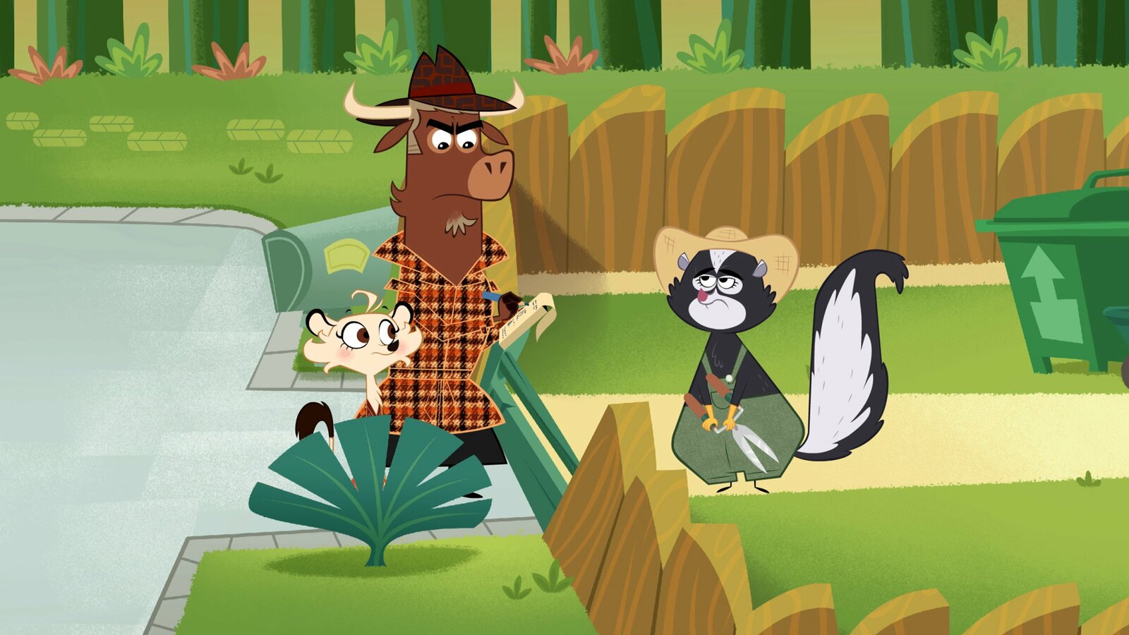 Wer hat den Beo erpresst?Frau Stinktier kann als Gärtnerin geschickt mit der Schere umgehen.Bild: © ZDF/Mondo tv