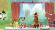 Wer hat beim Warzenschwein aufgeräumt?Auf der Bühne herrscht gröütes Durcheinander.ÂBild: © ZDF/Mondo tv