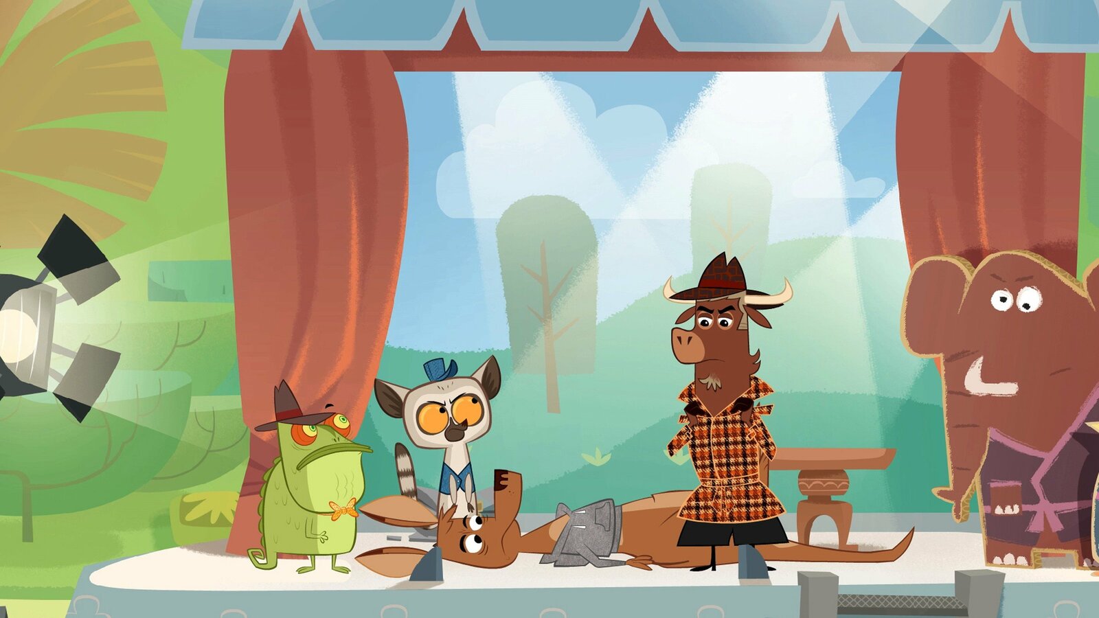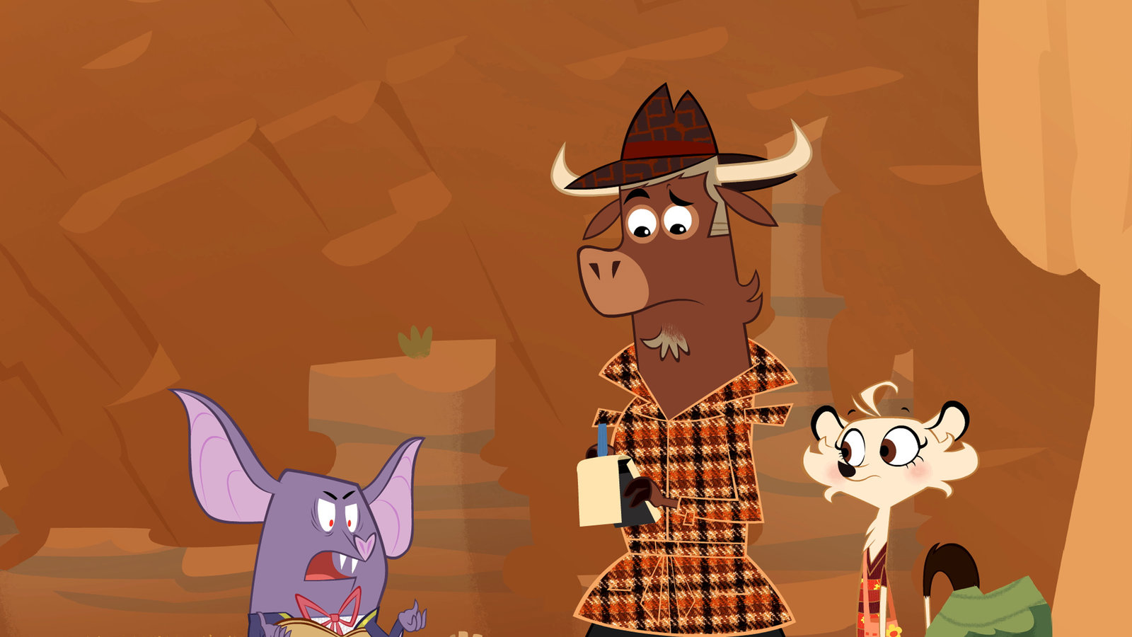 Wer hat beim Tapir eingesackt?Sherlock Yack und Hermione erscheinen im Haus des Tapirs, wo sich der Diebstahl ereignet hat.Bild: © ZDF/Mondo tv
