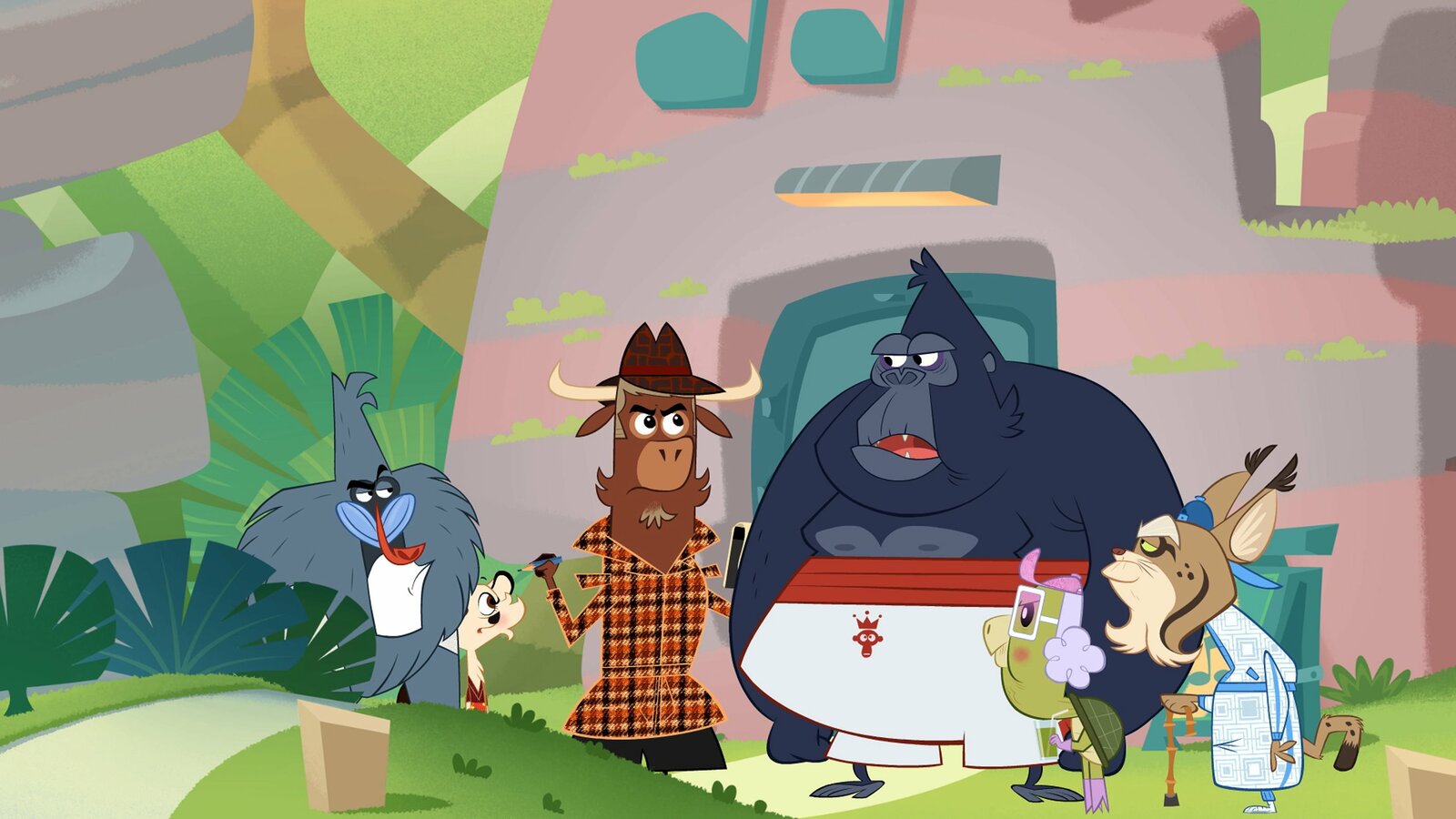 Wer hat der Boa aufgelauert?Gorilla, Schildkröte und der alte Rotfuchs werden verdächtigt, beim Pavian eingebrochen zu haben.Bild: © ZDF/Mondo tv