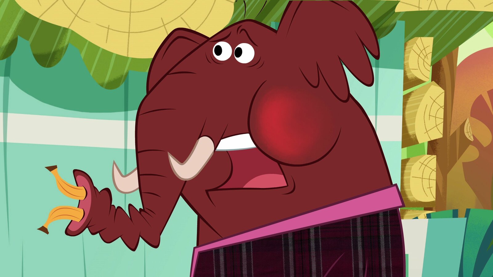 Wer hat den Seehund beklaut?Der Elefant bekommt kaum Luft. Jemand hat ihm den Rüssel mit Bananen verstopft.Bild: © ZDF/Mondo tv